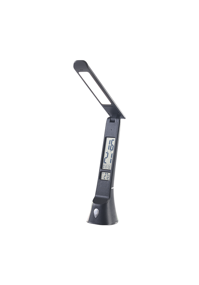 The dimmable and tunable Sublimo table lamp is the perfect task light which has multiple display functions like date,time,temperature and alarm clock.With a hyper-minimalist foldable design, this elegant table lamp is sure to illuminate your workspace to make way for many bright ideas. The ideal human centric lighting fixture, it offers dimmability in 3 CCTs and 3 step dimmability for varied applications. With a CRI > 80 , the low glare light emitted through the diffuser has excellent color rendering capability fit for all your illumination needs. The lamp is also available in black color.